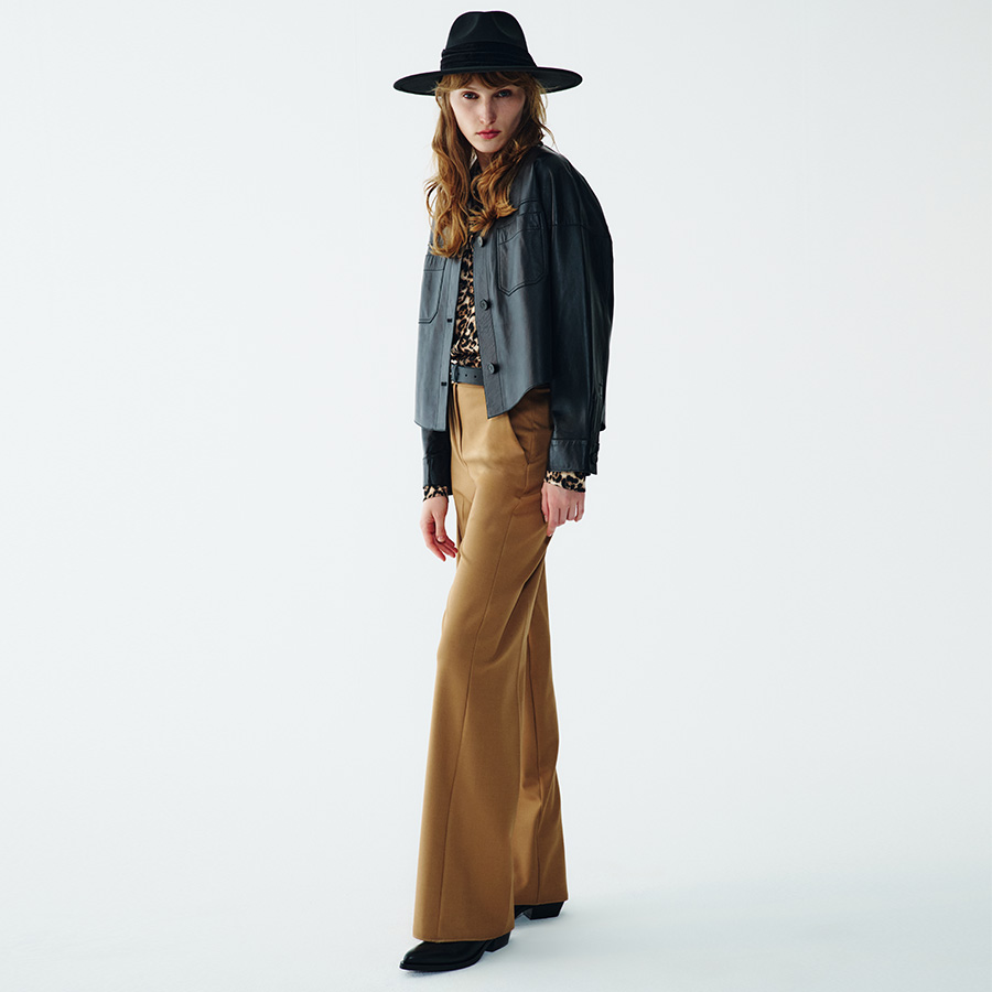 Leather meets denim with the same energy and vibes as the 1990s. Oversized jackets, wide-leg jeans and simple silhouettes that evoke the minimalism of that era.