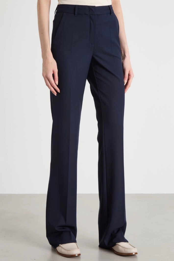 Straight-fit trousers crafted in a stretch viscose blend, with belt loops, French pockets on the front and welt pockets on the back. Concealed hook and zip fastening.