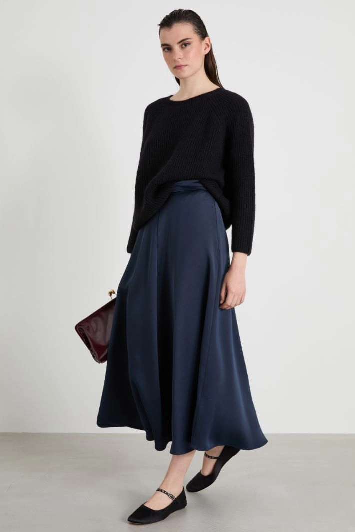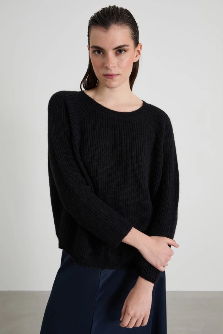 Loose-fit sweater in mohair blend yarn, with crew neck and long raglan sleeves.