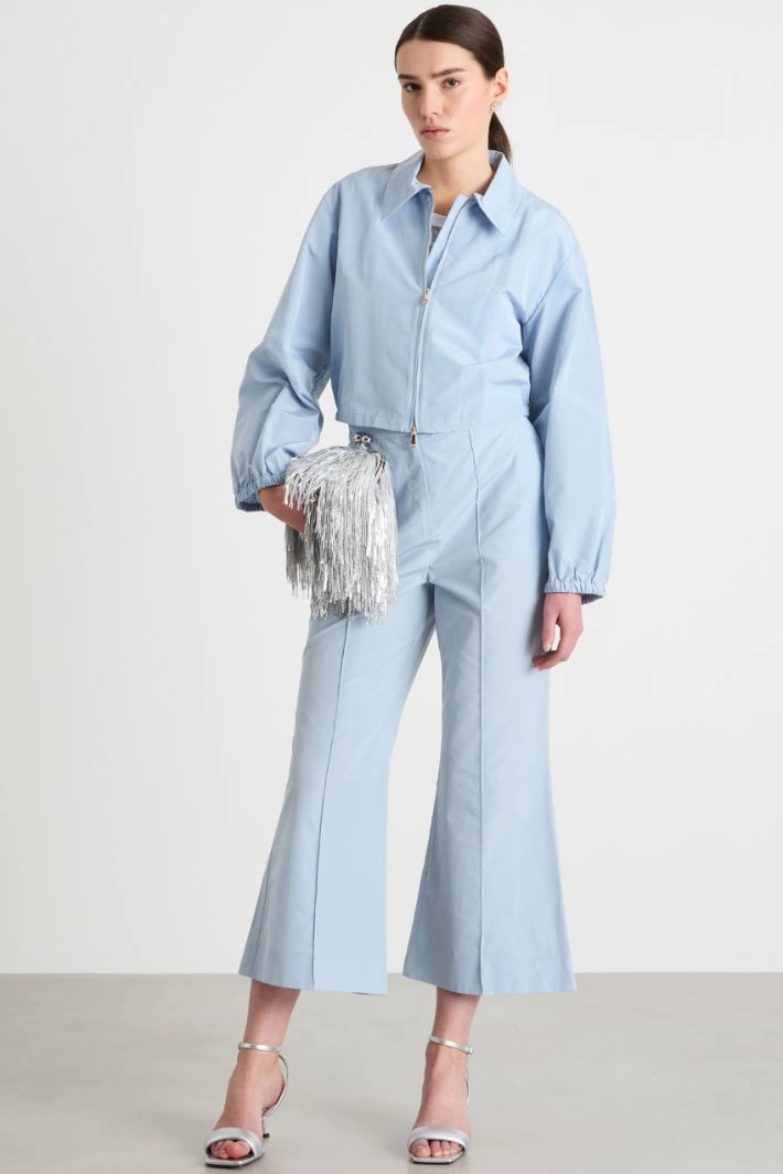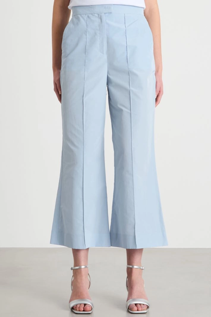 Flared-fit trousers in cotton-blend taffeta, with French pockets on the front and welt pockets on the back. Concealed fastening with a hook, button and zip.