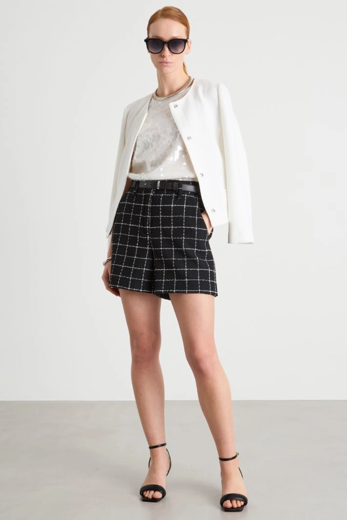Chain-Detail Basket-Weave Shorts