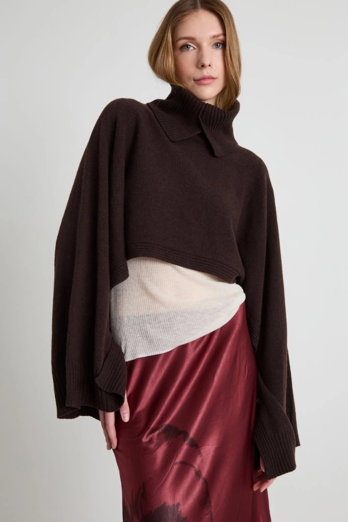 Crop wool-blend poncho