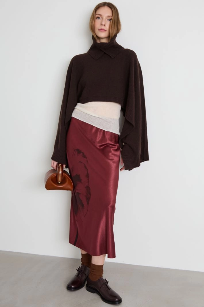 Printed satin midi skirt