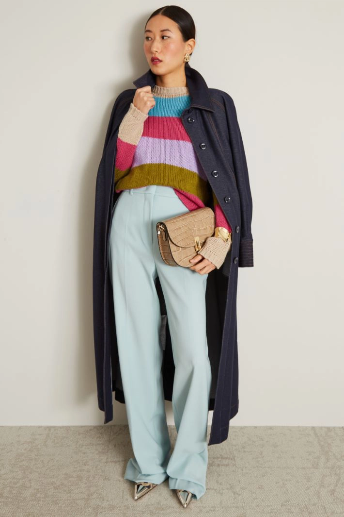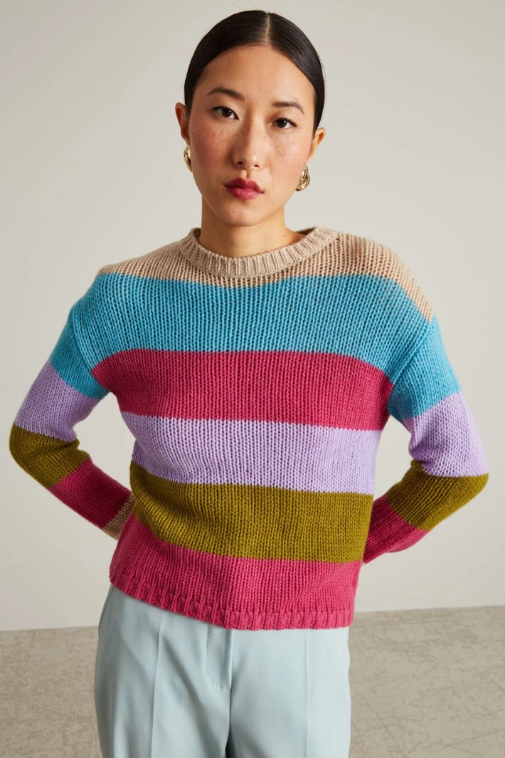 Straight-cut sweater in pure cashmere yarn, with a round neckline and long sleeves.