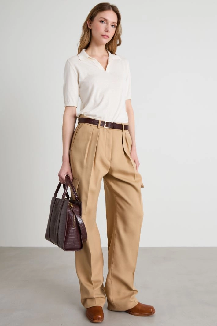 Silk and cotton yarn polo sweater