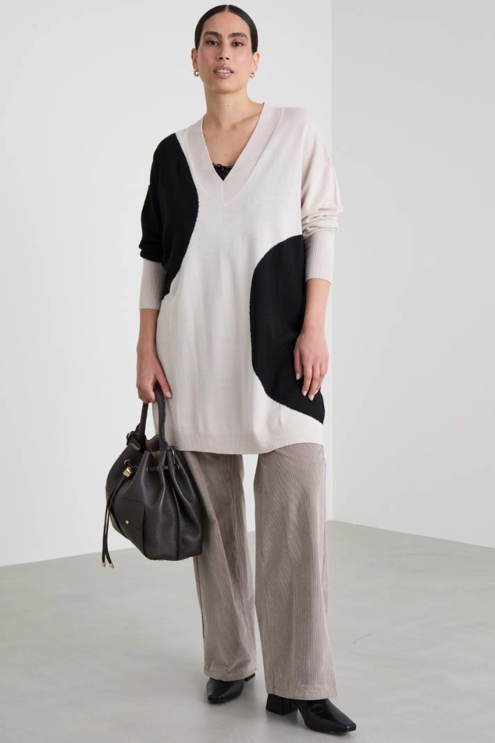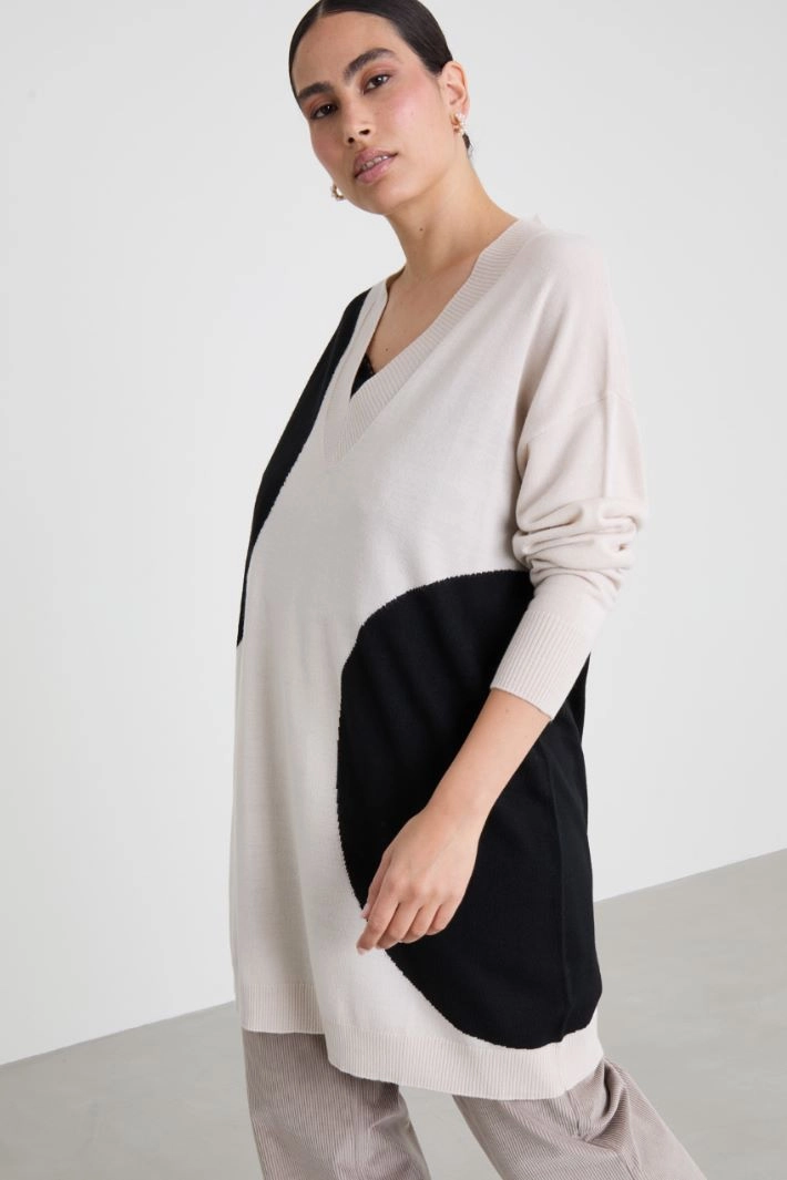 Long sweater with inlay