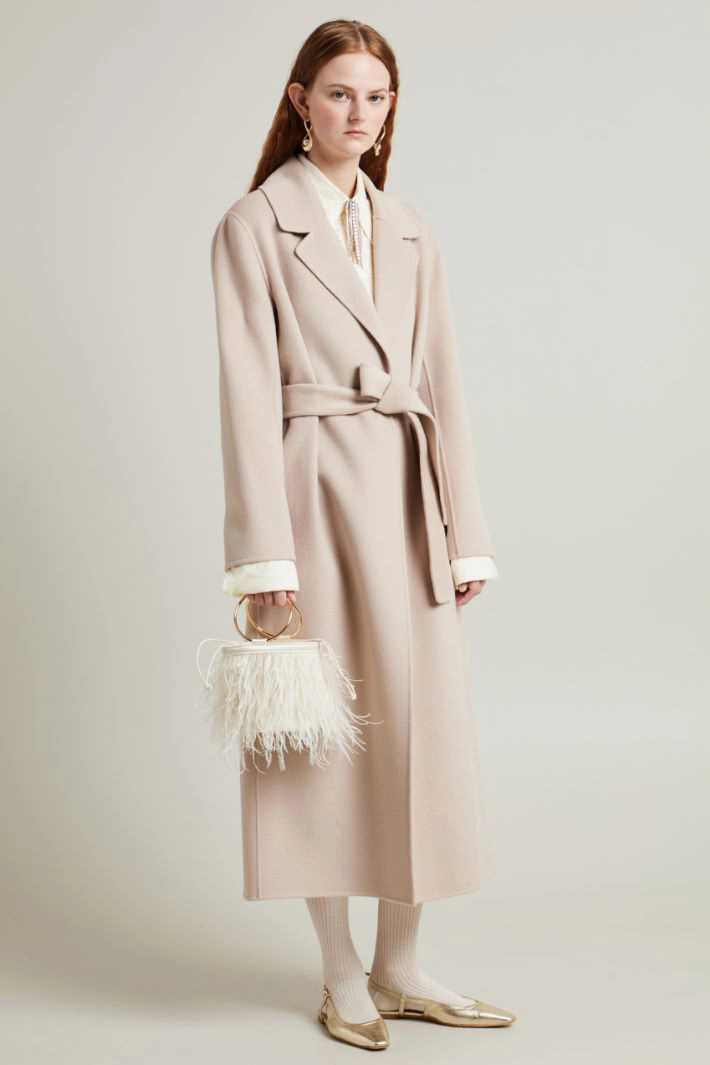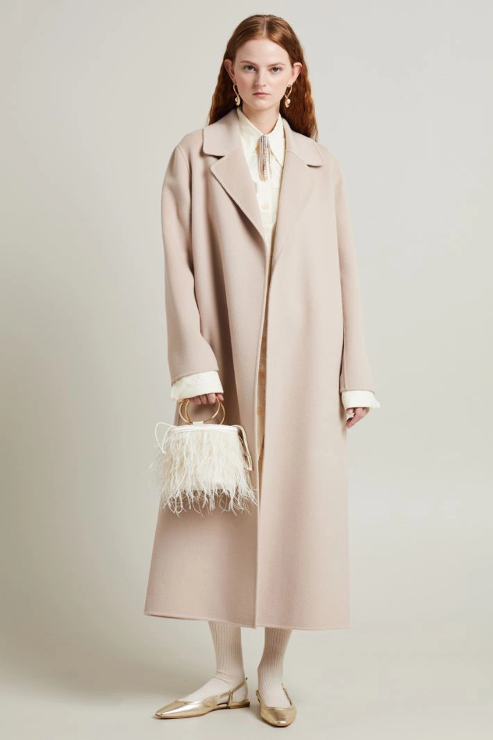 Straight-fit coat in double wool and viscose blend, with lapel collar, long sleeves and inset side pockets. Single-breasted fastening with visible buttons. Unlined.