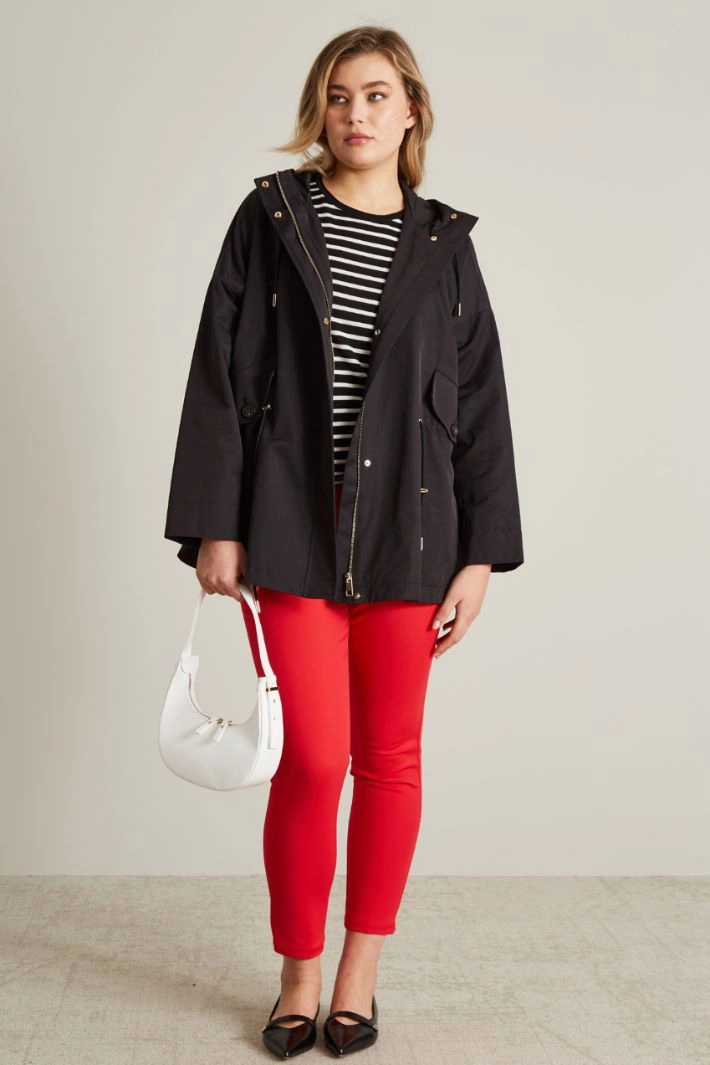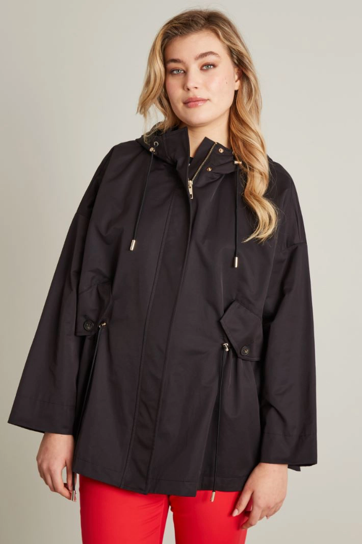 Straight-fit waterproof jacket in cotton gabardine, with a hooded collar and long sleeves. Flap pockets and buttoned side vents. Zip fastening.