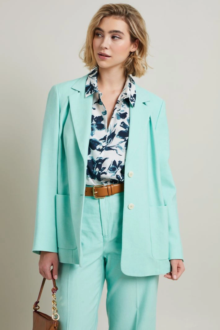 Straight-fit blazer in cotton and linen blend twill fabric, with a lapel collar, long sleeves, patch pockets and single-breasted button fastening. Lined.