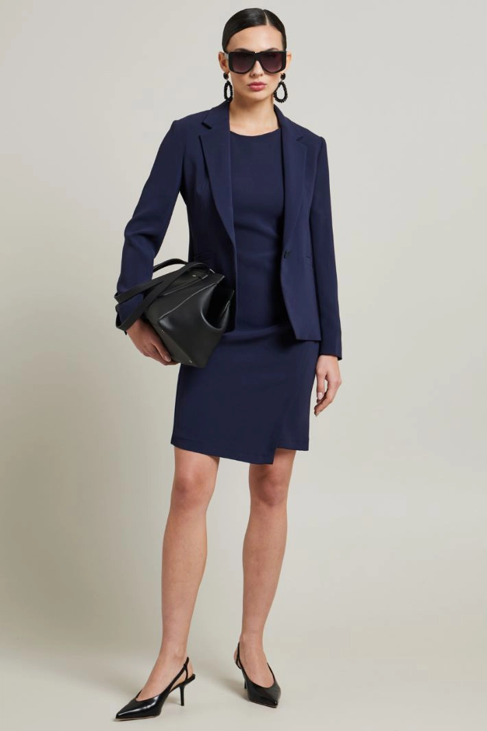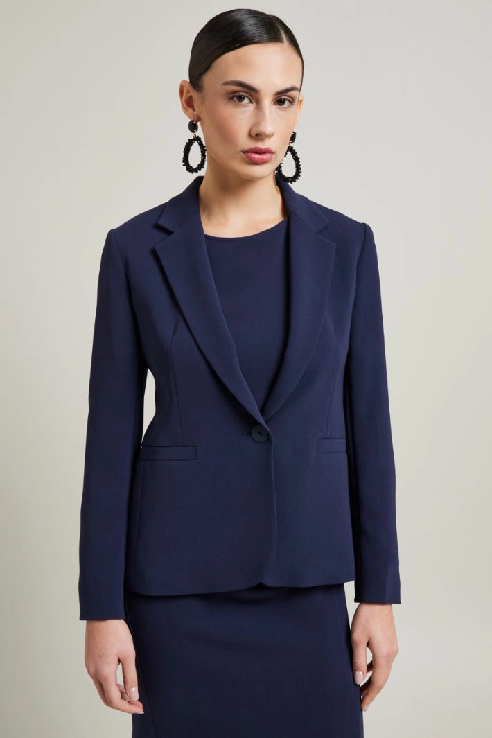 Straight-fit cady blazer with lapel collar, long sleeves and slits at the bottom, welt pockets and slit at the back. Single-breasted button fastening. Lined.