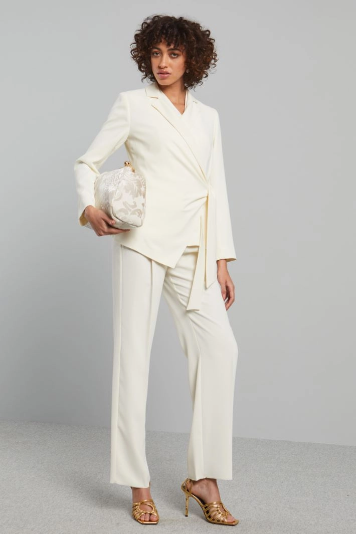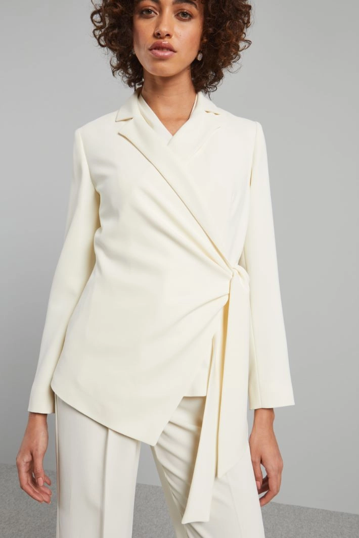 Wrap envers satin blazer with lapel collar and long sleeves. Satin side tie-embellished crossover fastening. Lined model.