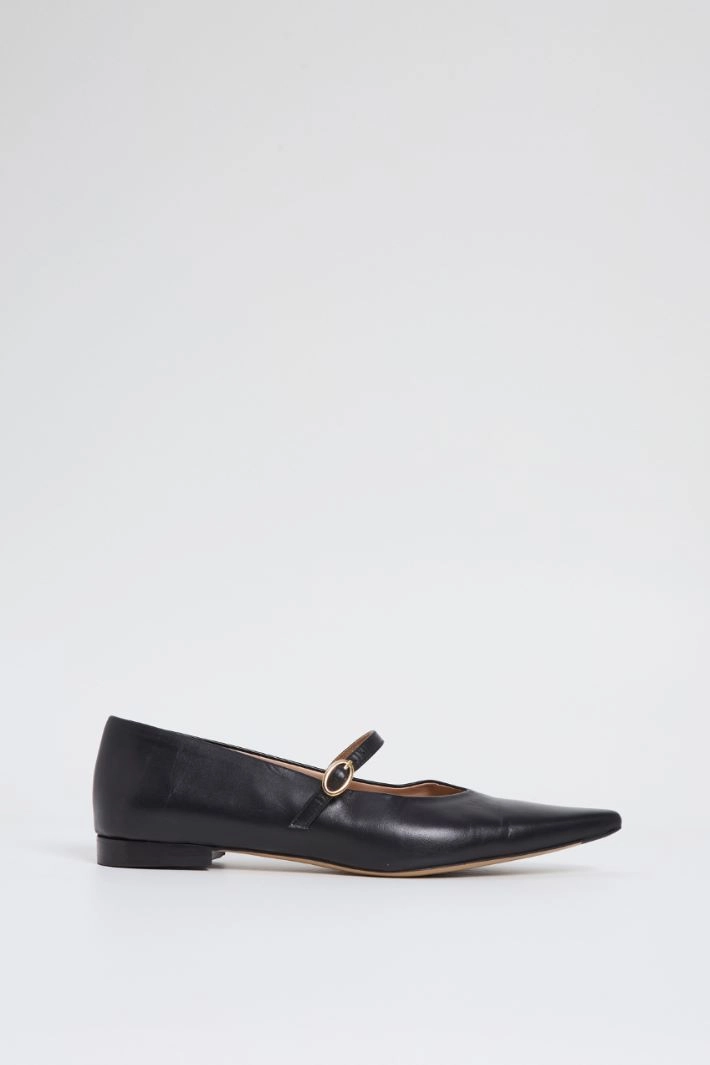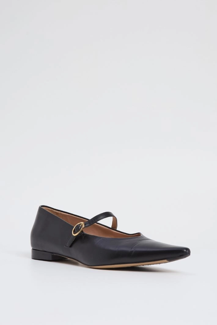 Ballerinas in genuine leather with pointed toe and adjustable strap on the instep. Leather lining and sole.