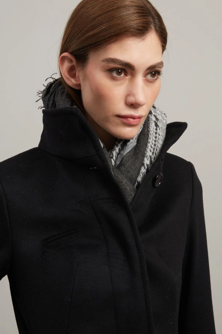 Stole in viscose, wool and alpaca blend fabric with fringed edges.