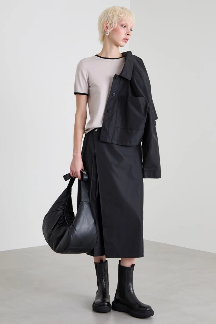Straight-cut T-shirt in pure wool yarn, with crew neck, short sleeves and patch pocket on the chest.