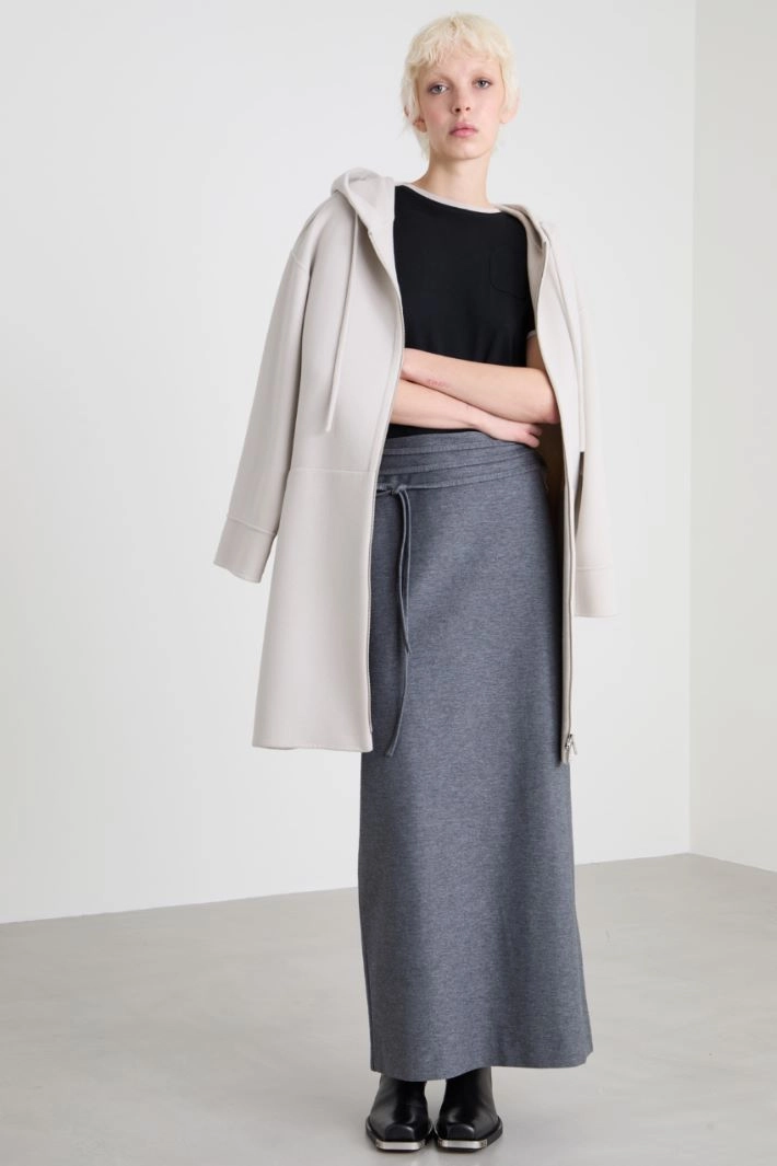 Straight-cut T-shirt in pure wool yarn, with crew neck, short sleeves and patch pocket on the chest.