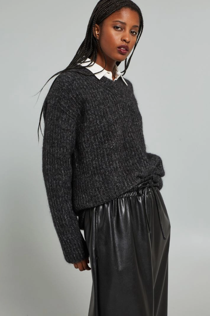 Rib-knit mohair sweater